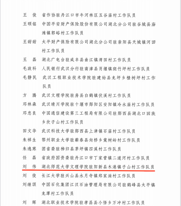 本网讯(通讯员 赵卫军)近日,湖北省乡村振兴局、省委组织部、省委农办、省农业农村厅联合下发《关于表扬2022年度省派驻村工作先进集体和先进个人的通报》,爱游戏ayx官网平台_爱游戏(中国)刘伟同志被评为2022年度工作突出驻村工作队员,系阳新县9支省派驻村工作队受表彰的2名队员之一。