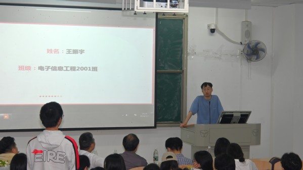 来自电子信息工程2001班王振宇同学,有着在腾讯、快手等互联网头部企业丰富的实习经历,他讲到自己从加入器乐社就开始寻找市场,后来就业面试成功应聘到腾讯视频号岗位,详实地叙述在了解市场中确定目标,在竞赛中获得实践经验,在读书中提升能力,他强调,学历固然重要,但是在自己心目中,只要今天的我比昨天的我有进步就足够了,因为一天天、一月月、一年年的积累,几年之后再回头看,变化将是巨大的。