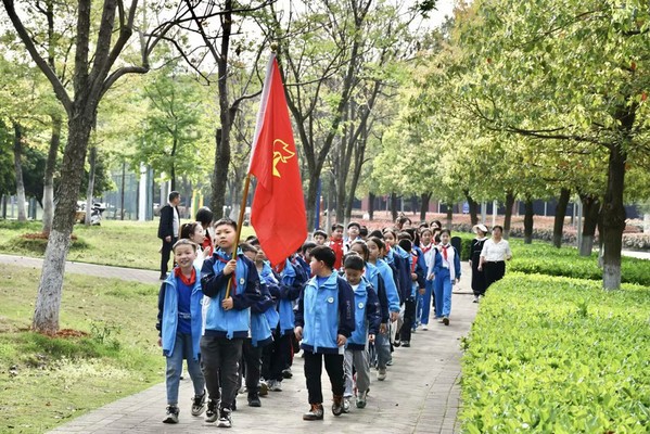 学校根据师范生的特点,把学校教学成果融合到中小学实践之中,开展以党建带团建、以党建带队建,与中小学合作,建设“大中小学思政课一体化共同体”。