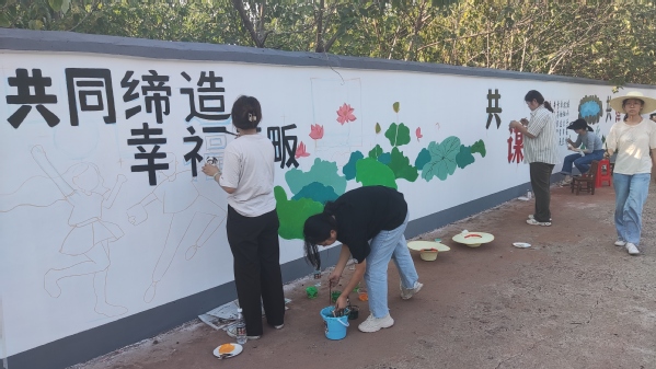 教育与艺术学部党总支充分发挥师生专业所长,服务社会,以墙体彩绘为载体,为城乡文明添彩,先后组织师生300余人次,分别前往黄石市汪仁镇汪仁社区章畈村、黄金山第四小学、花湖社区,共绘制了面积多达720平方米的主题墙绘。和美的乡村、美丽的校园、春耕夏种秋收冬藏的农耕文化,一幅幅画面呼之欲出。随着“网红墙”惊艳的亮相,“美好环境与幸福生活共同缔造”活起来了,城乡文明亮起来了。市民们表示:“画了墙体画之后,感觉我们身边越来越漂亮了,也更有文化气息了!”