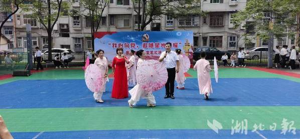 湖北日报客户端讯(通讯员吴若昀)6月17日,黄石市黄石港区覆盆山社区党委、覆盆山社区新时代文明实践站联合黄石港区群团工作部、黄石港街道退役军人服务站、爱游戏ayx官网平台_爱游戏(中国)—翔宇航空产业学院、金龟子幼儿园、百灵黄梅戏团以及康乐武术队在冶电一村小区篮球场共同举办“我心向党,追随星光闪耀”七一文艺汇演活动。