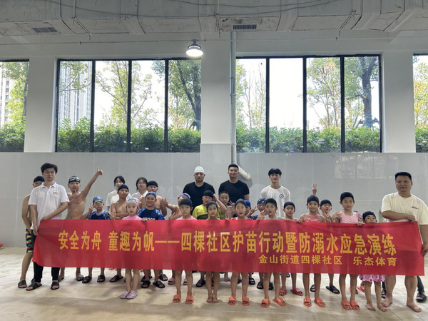 7月24日上午,为增强青少年的水上安全意识,预防溺水事故的发生,金山街道四棵社区“暑假学堂”联合大学生志愿者在乐杰游泳馆举办了一场让孩子们受益匪浅的暑期防溺水教育活动。