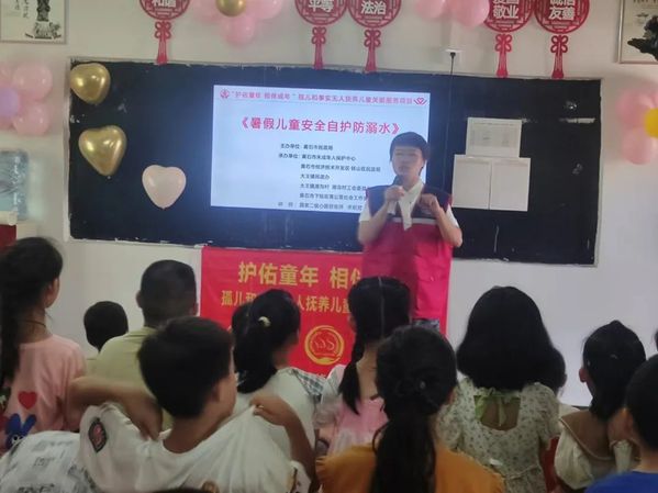 7月22日上午,区民政局及蒲公英社会工作人员到大王镇港沟村暑期学堂开展“用爱陪伴,温暖成长”活动,面对面地向儿童学生普及防溺水安全知识,筑牢防溺水安全防线。