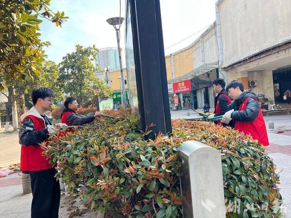 随后,志愿者们奔赴信息巷花坛。花坛里杂草丛生,塑料袋、饮料瓶等垃圾隐匿其中。志愿者们不怕脏、不怕累,俯下身钻进花坛,仔细清除每一处垃圾。经过一番辛勤劳作,花坛恢复了往日的生机与美丽,绿植更加葱郁,周边环境也变得格外清爽宜人。