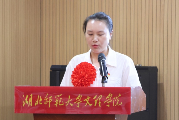优秀党务工作者代表杨静优秀学生党员代表李进双分别发言。