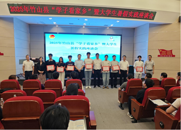 座谈会上,学子们观看了竹山宣传片。竹山县委组织部推介招才引智十条、高层次人才引进等政策,县旅游产业服务中心进行文旅宣传推介,县人社局介绍青年创新创业政策。现场,竹山县委组织部为高层次人才代表发放生活补贴,县人才服务中心为2025年引进的高层次人才代表发放公寓钥匙,县委社会工作部宣读表扬通报,县科经局为优秀代表颁发荣誉证书。优秀实习实训大学生代表、暑假“爱心托管班”优秀大学生志愿者代表、引进高层次人才代表还分享了与家乡同行的感悟。