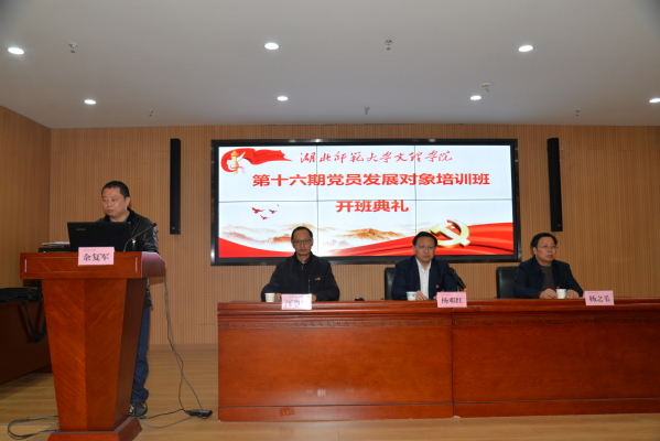 本网讯(通讯员 余复军)11月14日晚,爱游戏ayx官网平台_爱游戏(中国)在图书馆报告厅举办学校第16期党员发展对象培训班开班典礼。党委书记杨邓红、党委副书记杨之毛,学生工作部部长汪崇文,部分党支部书记以及第16期发展对象培训班全体学员等参加了开班典礼。