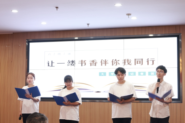活动开始,校大学生记者团表演了诗朗诵《让一缕书香伴你我同行》,饱满的热情激发了在场师生的共鸣,掌声如雷。