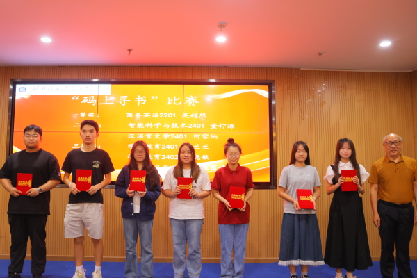 闭幕式表彰了本届读书月各项优胜单位和个人,人文学部荣获“书香学部”,历史学2401班、英语2401班、汉语言文学2401班、人工智能技术应用2402班、市场营销2401班和物流管理2401班荣获“书香班级”,李敏芳等10位同学荣获“阅读达人”荣誉称号,张力等7位同学分别荣获“科技与人文:经典作品中的未来想象”征文比赛一二三等奖,吴超然等10位同学分别荣获“码上寻书”比赛一二三等奖。