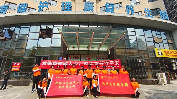 2024314上午9:00,经济与管理学部学生党支部志愿者们前往黄石市南庭养老院,开展了以“雷锋精神照人心,反诈宣传守平安”为主题的学雷锋、宣反诈志愿服务活动。