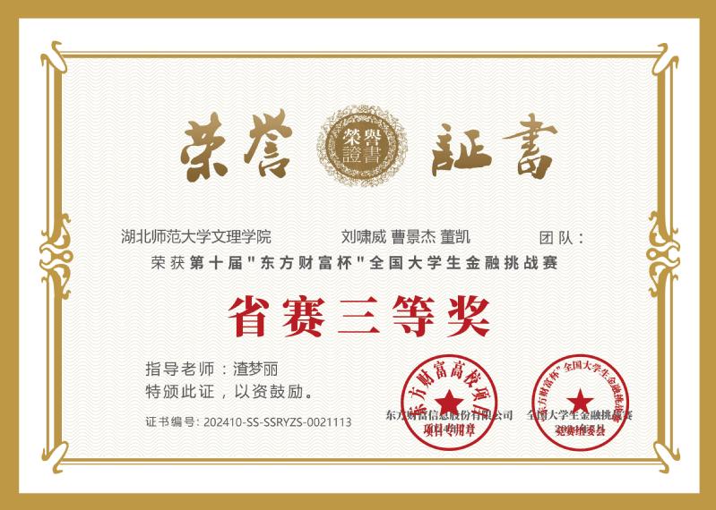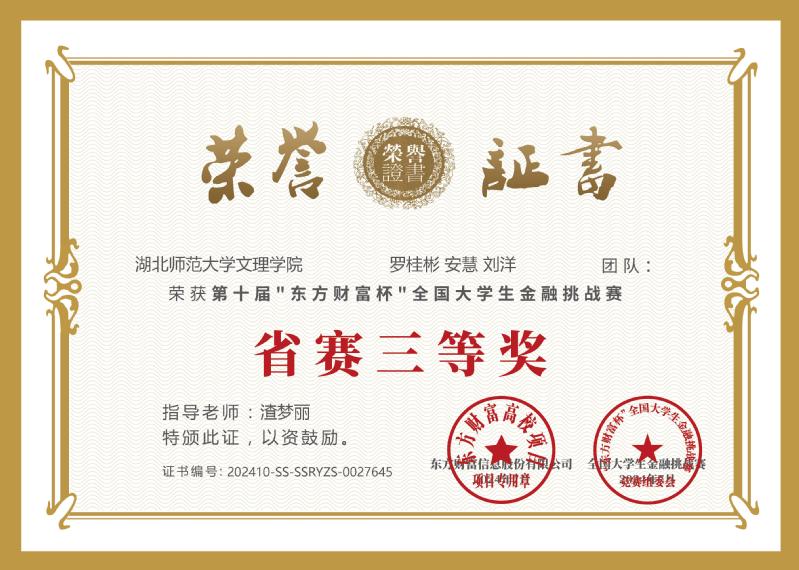 8月2日,第十届“东方财富杯”全国大学生金融挑战赛落下帷幕,爱游戏ayx官网平台_爱游戏(中国)经济与管理学部学生最终荣获省级二等奖五项,省级三等奖五项。