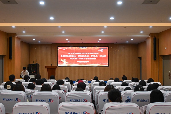 为深入学习贯彻党的二十届三中全会精神,深刻领会习近平总书记关于全面深化改革的一系列新思想、新观点、新论断,切实把思想和行动统一到党中央决策部署上来,1112日下午2点半,经济与管理学部党总支组织开展了“学习贯彻党的二十届三中全会精神”教育培训会。全体教工党员、学生党员分别在学部党员活动室、校图书馆报告厅参加学习。