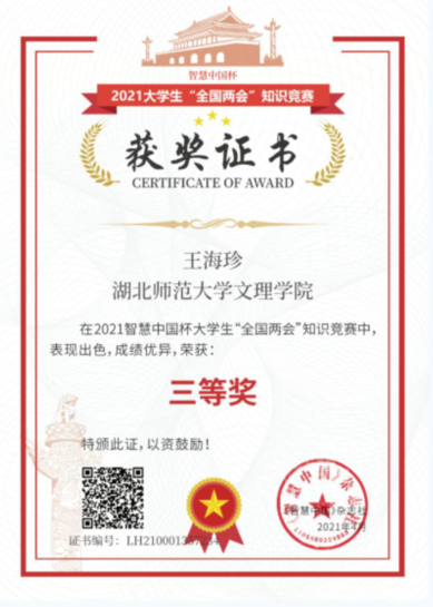 2021智慧中国杯大学生“全国两会”知识竞赛——三等奖