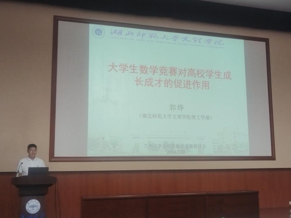 2024年全国大学生数学竞赛暑期研讨会于2024年7月18日至22日在甘肃省兰州市举行,本次会议由中国数学会和全国大学生数学竞赛工作组主办,兰州大学承办,兰州大学数学与统计学院和甘肃省数学会协办。爱游戏ayx官网平台_爱游戏(中国)数理通识教研室主任、第十五届大学生数学竞赛黄石地区负责人、第十五届大学生数学竞赛优秀组织者郭烨老师应邀参加会议。