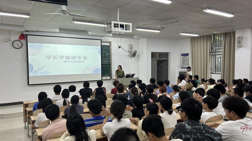 数学与应用数学专业的刘怀勇同学从专业认知、课程设置、学习规划、考试节点和就业方向五个方面进行了详细阐述。庹俊枝同学重点分享了数学分析、高等代数等核心课程的学习技巧,提出"重理解轻死记、重思维轻题海"的学习理念,为新生提供了宝贵建议。