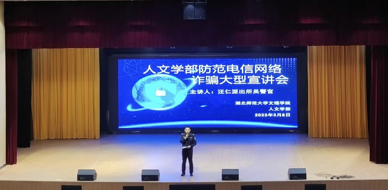 为增强学生的防诈安全意识,落实反诈骗行为,人文学部于3月6日— 3月8日晚6:30在学校学术活动中心举行了反诈骗巡回宣讲活动,并邀请了汪仁镇派出所吴警官来校进行反诈骗宣讲。