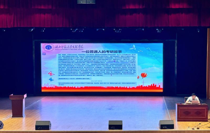 最后,学工办副主任郭旭林老师就此次考研情况做出总结,他选择了一个“普通人”的考研故事来激励21级考研生,告诫同学们一定要持之以恒,坚持就是胜利!以会促学,旨在搭建一个平台,让历年的考研成功者与即将走上考场的同学们分享他们的经验与心得,通过考研学长学姐们的实战经验,为备战考研的同学们指明方向,减少弯路,增强信心,助力他们在即将到来的考试中取得优异成绩。本次考研经验交流会的成功举办,不仅为备战考研的同学们提供了宝贵的经验,也增强了同学们的备考信心。