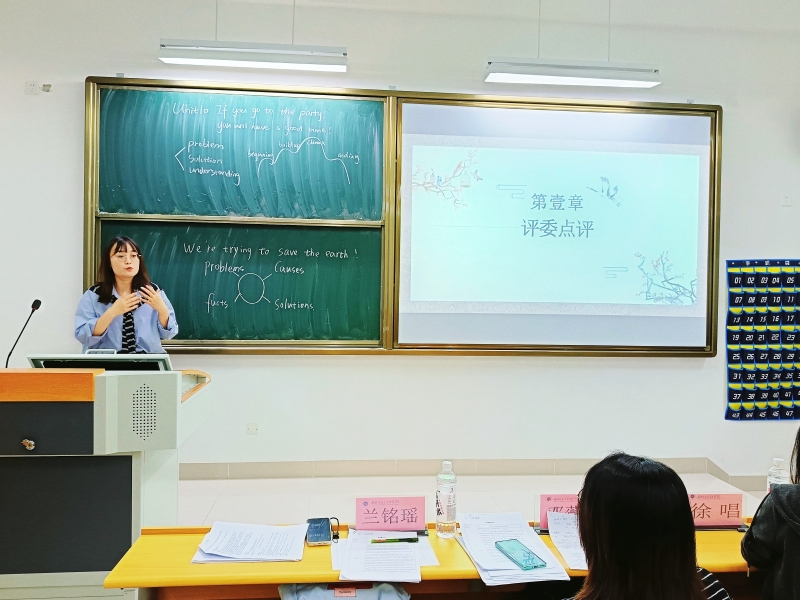 英语专任教师兰铭瑶、邓薇薇、徐唱三位老师担任指导评委,选手们以标准的口语表达、创意的PPT设计,将学情分析、教学目标、活动设计与学科核心素养深度融合,10分钟的展示中,选手们既展现扎实的语言功底,也体现“教—学—评”一体化的设计思维。兰铭瑶、邓薇薇老师在点评中肯定选手“教态自然、环节完整”,同时针对“学情分析同质化”“板书与PPT逻辑衔接不足”等问题提出建议:“英语教学需兼顾工具性与人文性,教学设计应紧扣学生认知规律,让核心素养在真实情境中落地生根。”