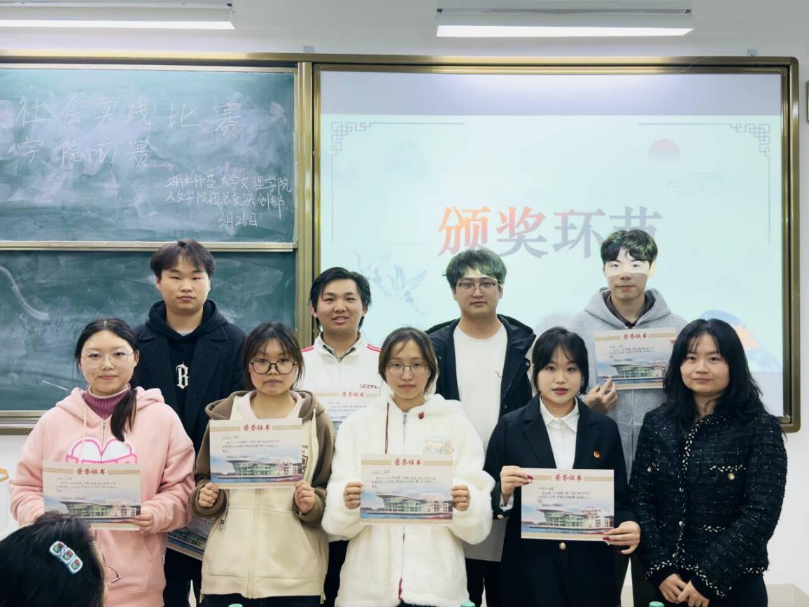青春不息奋斗不止。颁奖现场气氛热烈,选手与评委嘉宾合影留念,本次人文学院2026寒假社会实践比赛初赛正式圆满落幕。