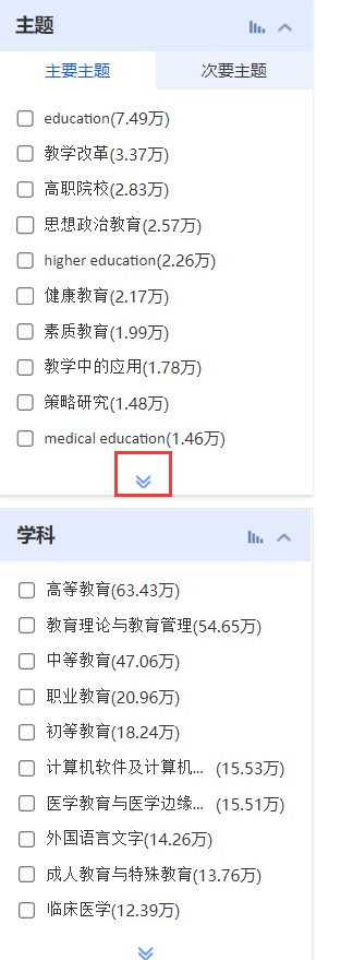大部分分组项的内容按文献量排序,部分分组项采用特有的排序标准,分组同时进行权威性推荐。