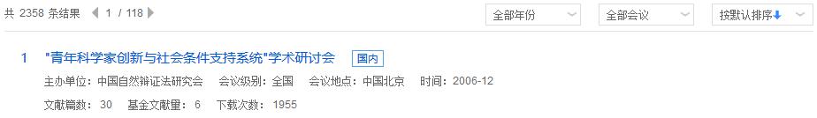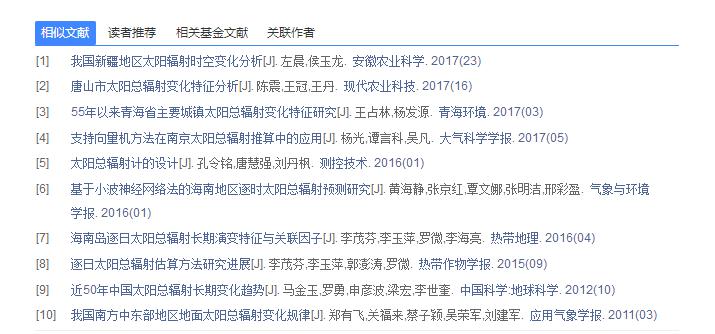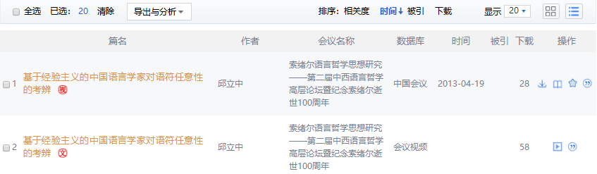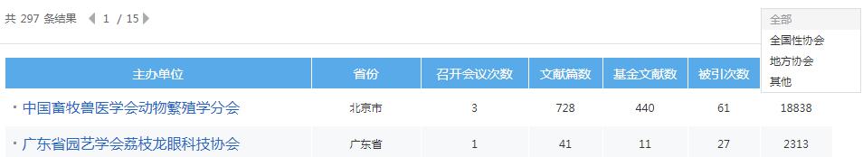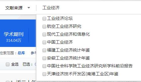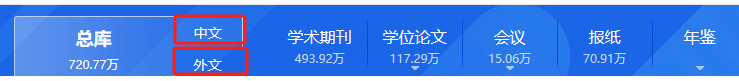 总库检索后,点击各资源类型名称,下方的检索结果区即为该资源类型文献。