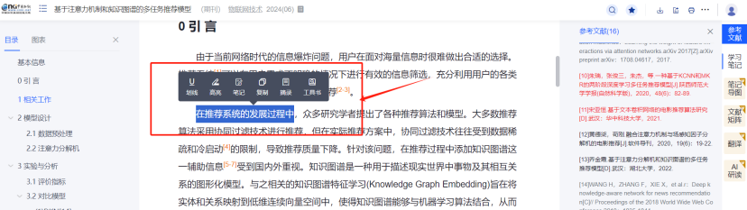(8) 新增个性化推荐系统,集精彩推荐和热门文献于一体,版面占据总库平台及各单库的首页面,我的关注与个人账号关联,满足用户个性化需求。