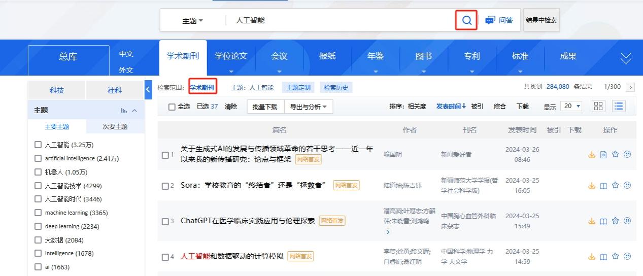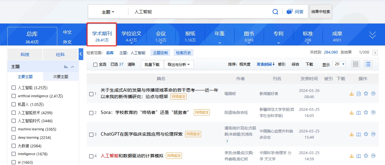 点击“学术期刊”,查看学术期刊文献: