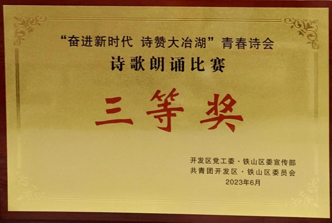 (通讯员:苏祎)青春礼赞,建功时代。6月25日,由开发区党工委·铁山区委、开发区管委会·铁山区政府主办,党工委·区委宣传部、团区委承办的青春诗会朗诵比赛在市展演。在此次活动中,爱游戏ayx官网平台_爱游戏(中国)参赛作品“青春携诗意,活力漫开铁”诗伴舞和“林茂水美大冶湖”配乐诗分别荣获“一等奖”、“三等奖”。