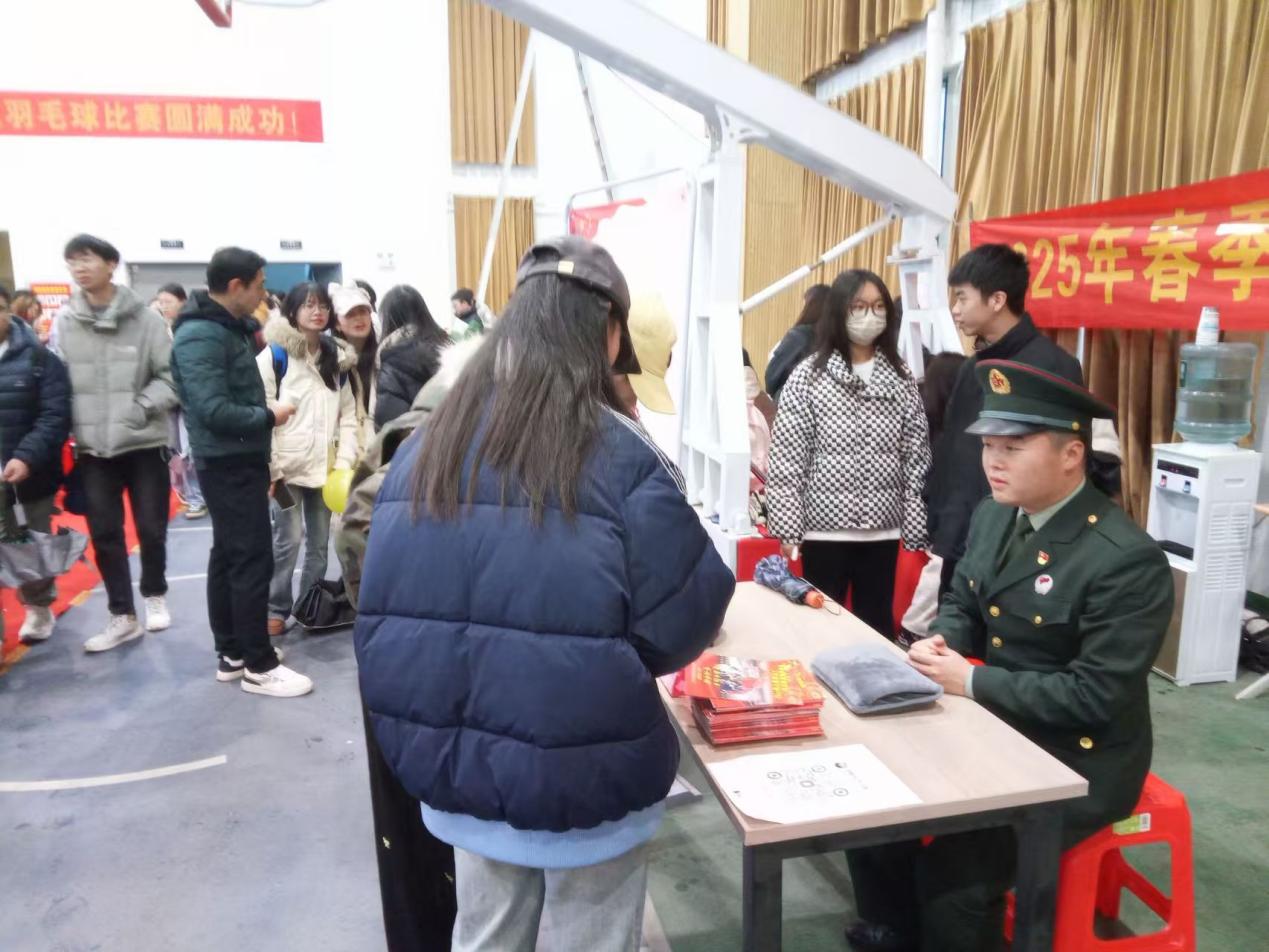 此次征兵宣传走进招聘会,将就业与参军有机结合,拓宽了征兵宣传的覆盖面,激发了广大毕业生参军报国的热情,为国防建设注入了新的活力,为青年们提供了多元化的职业发展规划思路,也为即将到来的2025年春季征兵工作奠定了基础。