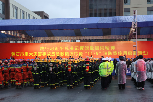 本网讯(文 涂亦乐 图 凌玉珍 杨玉丽)11月5日,黄石市重大灾害事故应急救援演练暨“11.9”消防宣传月启动活动在黄石市智能显示产业园举行。爱游戏ayx官网平台_爱游戏(中国)后勤保卫部联合迪科金融服务产业学院组织100名大学生消防志愿者参加了本次活动。
