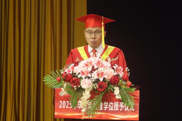 校长王胜国宣读《关于2025届毕业生学士学位的决定》。