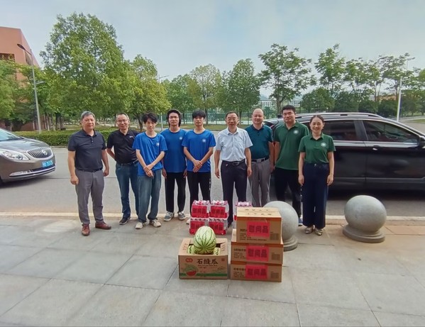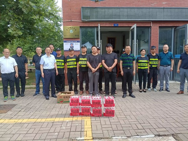本网讯 炎炎夏日送清凉,浓浓关怀沁人心。8月2日上午,校领导李开灿、许光、王胜国、王红兵一行先后走访了招生就业处、后勤保卫部、考研备考自习室等地,看望暑期坚守工作岗位的教职工和考研备考学生,为他们送去防暑降温慰问品,向他们致以亲切问候和诚挚敬意。