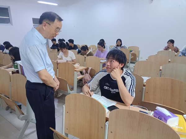 考研备考自习室,李开灿校长详细了解备考学生的学习进度、备考计划及遇到的困难。他鼓励大家,要坚定信心,相信日积月累的付出终会化为成功基石;坚持不懈,考研如同长跑,冲刺阶段更需耐力;找准方法,善用知识框架梳理、高频考点总结等策略,避免盲目刷题;劳逸结合,保持适量运动和充足睡眠,以最佳状态投入复习。同学们表示,学校领导的关心和鼓励让他们深受感动、倍受鼓舞,定将珍惜时间、刻苦学习,以优异成绩回报学校和家庭的期望。